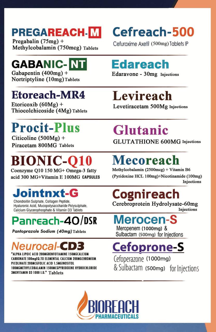 At Bioreach Pharmaceuticals, we provide a comprehensive range of high-quality medicines and healthcare products tailored to meet every medical need. Our inventory includes both branded and generic formulations, ensuring affordability without compromising on efficacy.